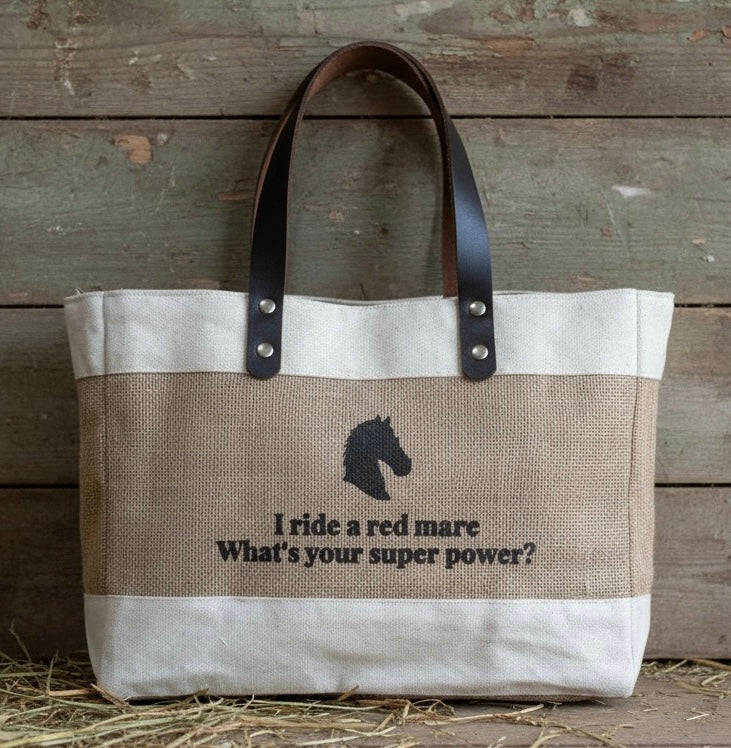 This is the perfect mini tote for grroming supplies, small barn essentials or errands! It's functional and chic. Genuine leather handles.