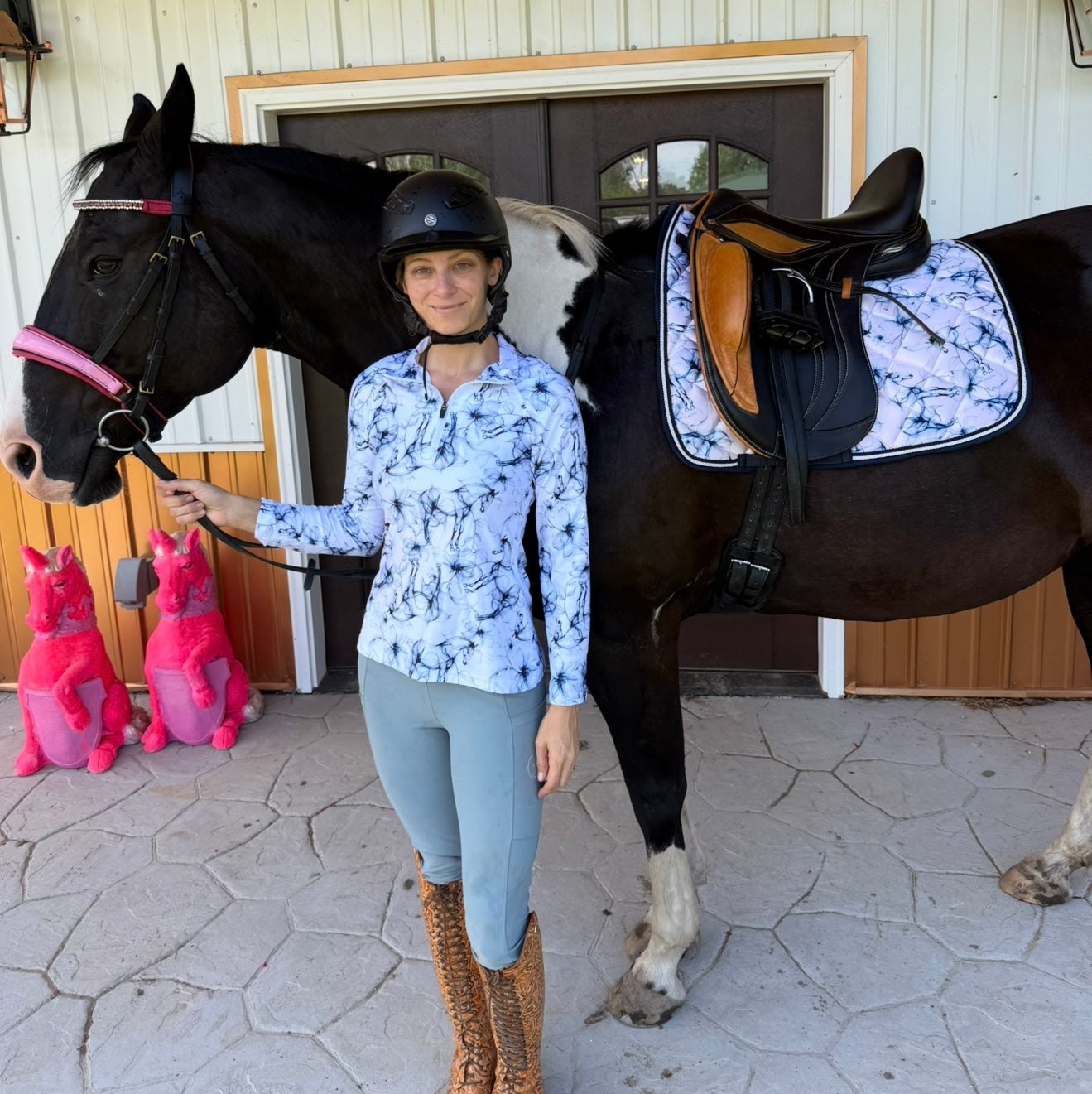 Penny Equestrian Apparel runs true to normal women's apparel sizing but that can mean a lot of different thins. Use this guide the help you. Consider sizing down for a fitted look if in-between sizes or sizing up if large-chested or prefer a less fitted look.