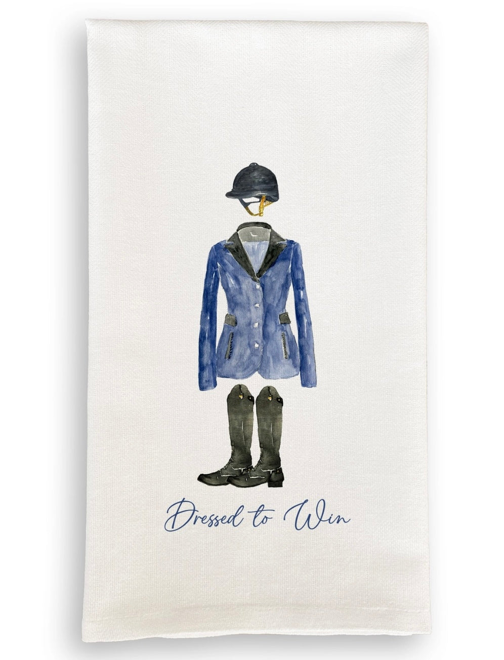 100% cotton dishtowel with gorgeous equestrian artwork. Choose between the two sayings:“A great horse will change your life” ”Dressed to win” Dimensions are approximately 20" x 25". |
