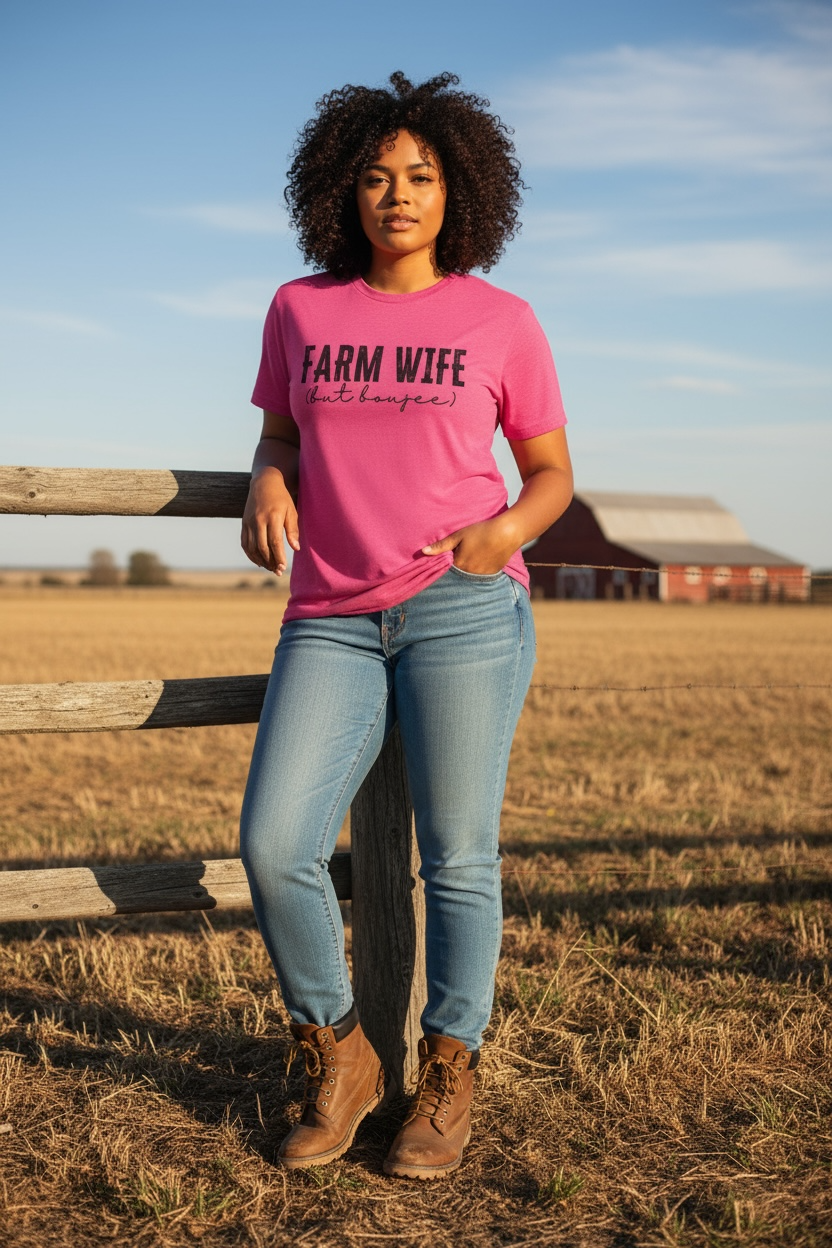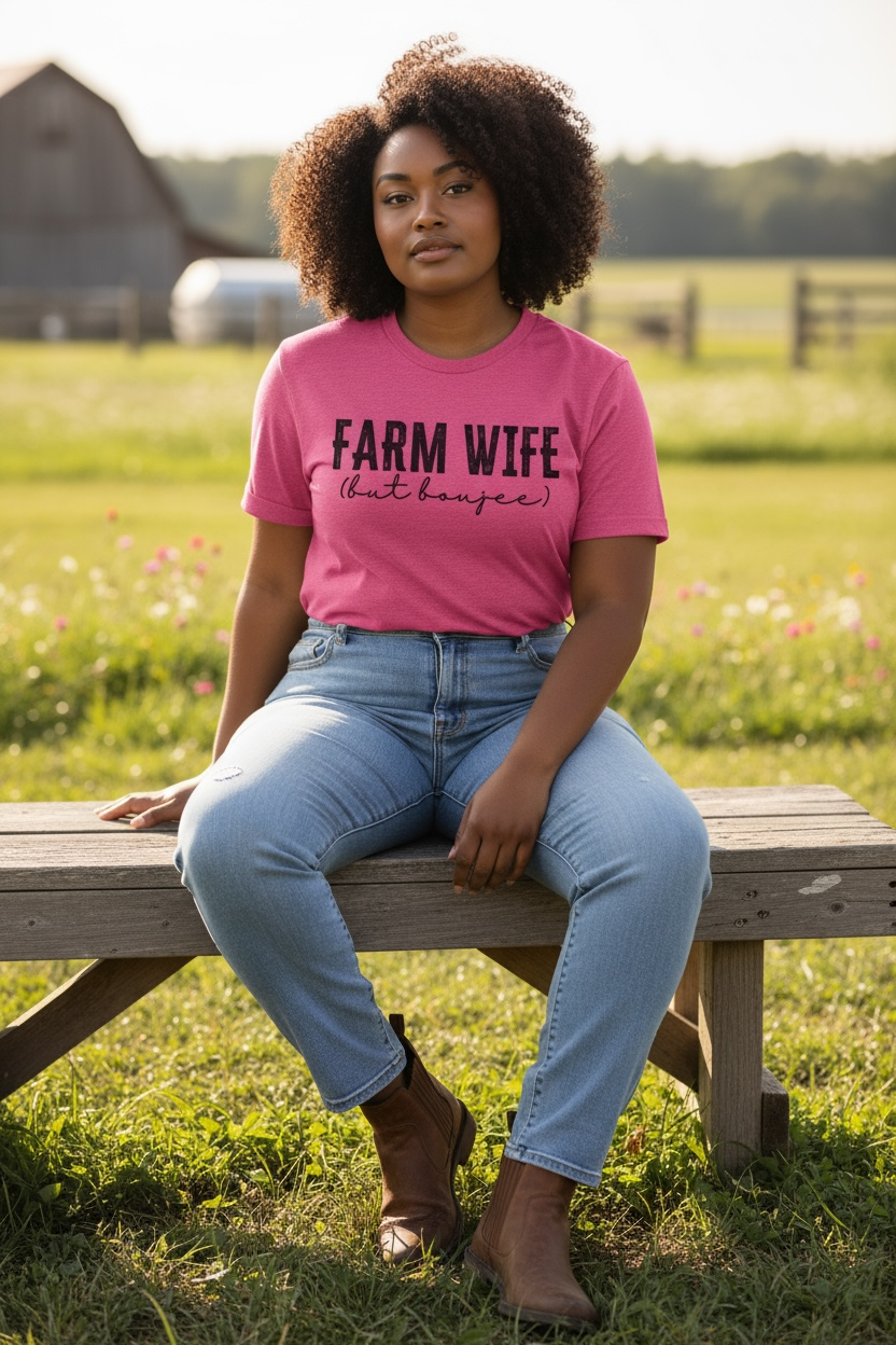 Bring sass to the pasture with this “Farm Wife, But Boujee” tee — perfect for the woman who can muck stalls and rock designer shades.