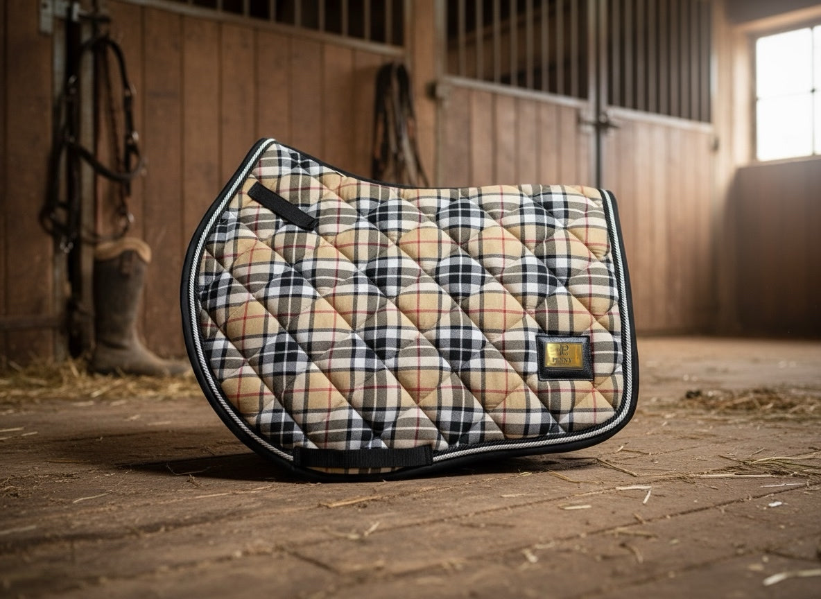 Crafted in a signature plaid pattern of warm beige, black, ivory, and crimson lines, this pad combines heritage style with modern performance. The quilted diamond stitching ensures even padding and breathability, while the soft lining keeps your horse comfortable during every ride.