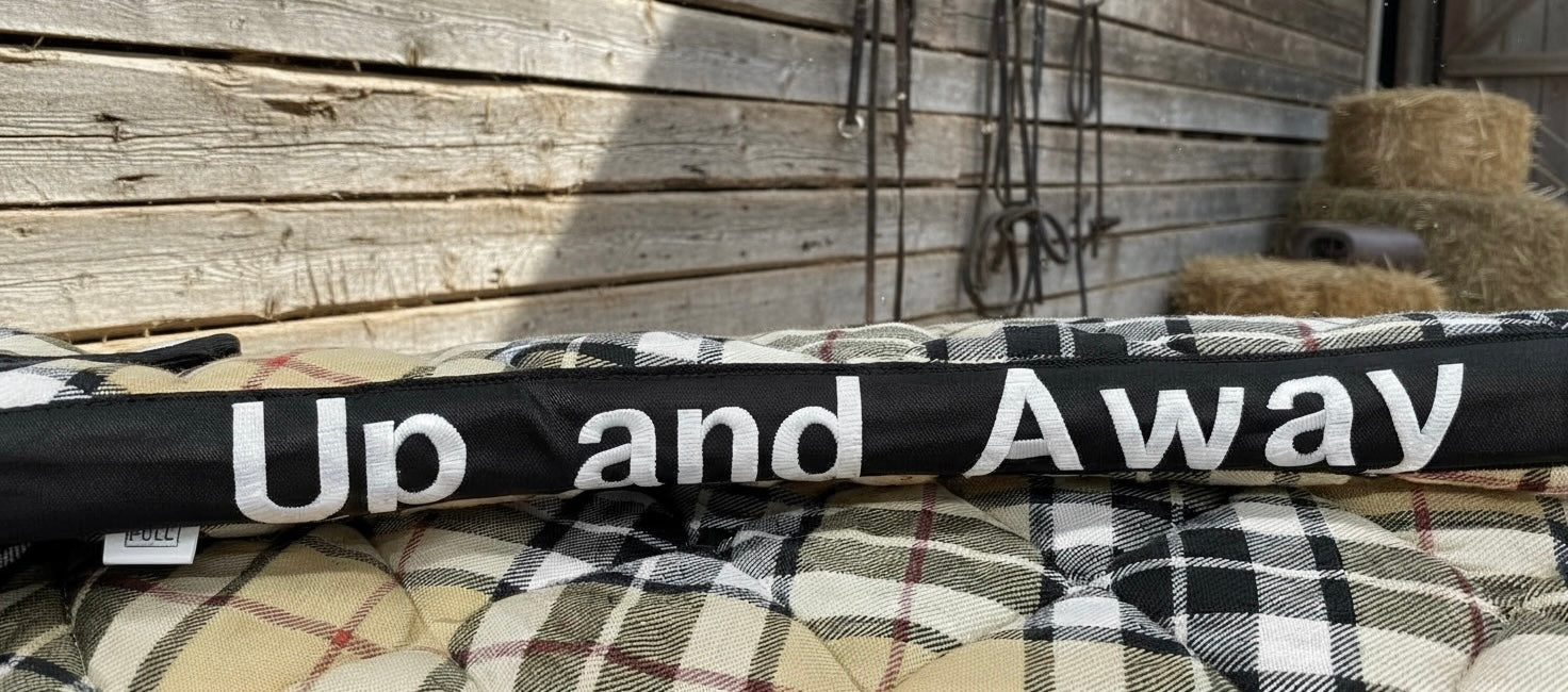 Finished with bold embroidered lettering on the spine that reads “Let’s Dance” on the dressage pad and “Up & Away” on the jump pad, this pad celebrates the beautiful connection between horse and rider. Its durable construction, subtle rope piping, and sophisticated tones make it a standout in both everyday schooling and show settings.