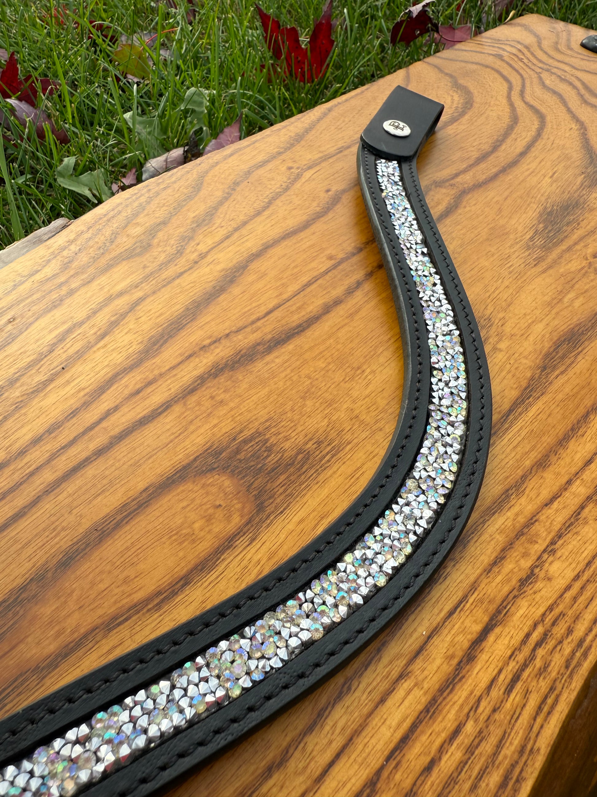Designed for the modern rider who values both sophistication and simplicity, this browband features brilliant hand-set crystals that catch the light with every stride.