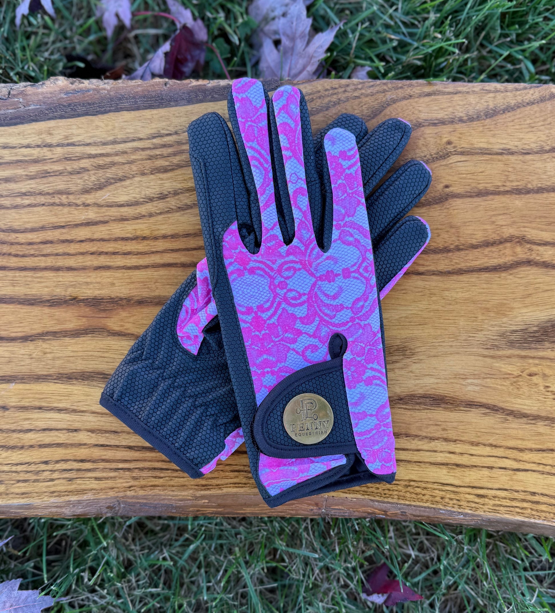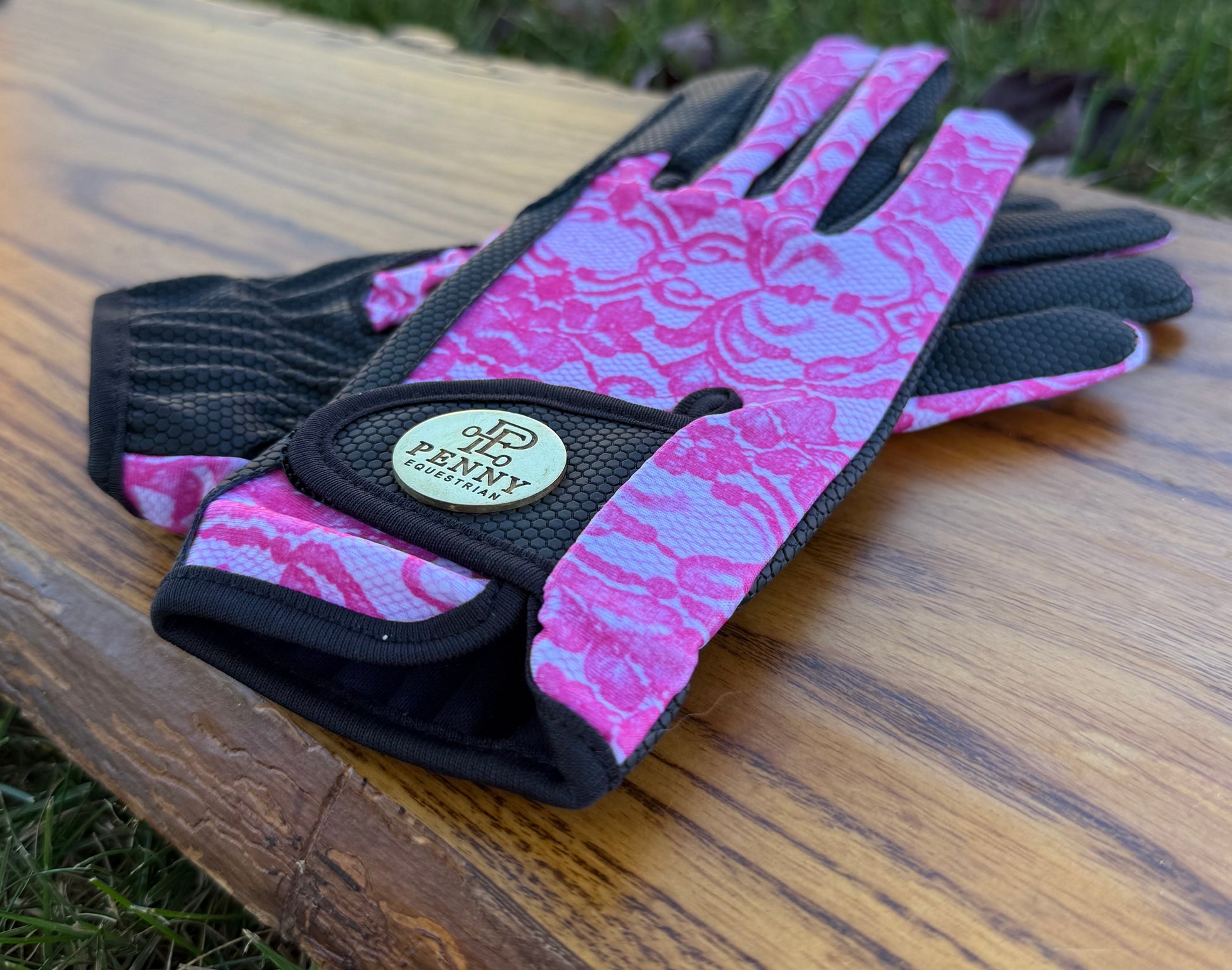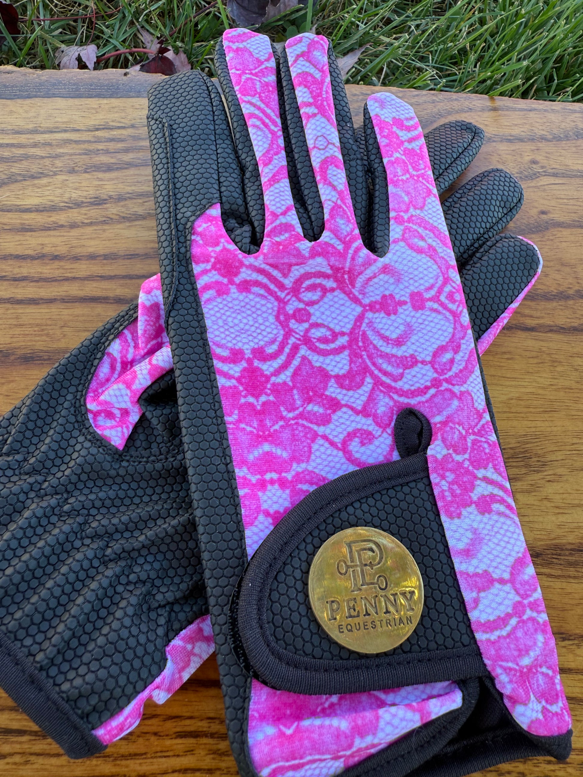 The supple faux leather palm offers a secure, grippy feel on the reins, while the breathable stretch fabric on top moves effortlessly with your hand. Finished in a signature Penny Equestrian logo, they blend modern elegance with practical comfort—perfect from schooling ring to show ring.